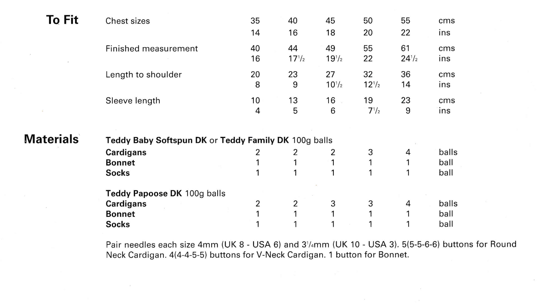 Much older patterns (usually 1970s and earlier) are written in UK imperial terms. For help with this, please click here to read our vintage pattern help and knitting needle size conversion chart.
