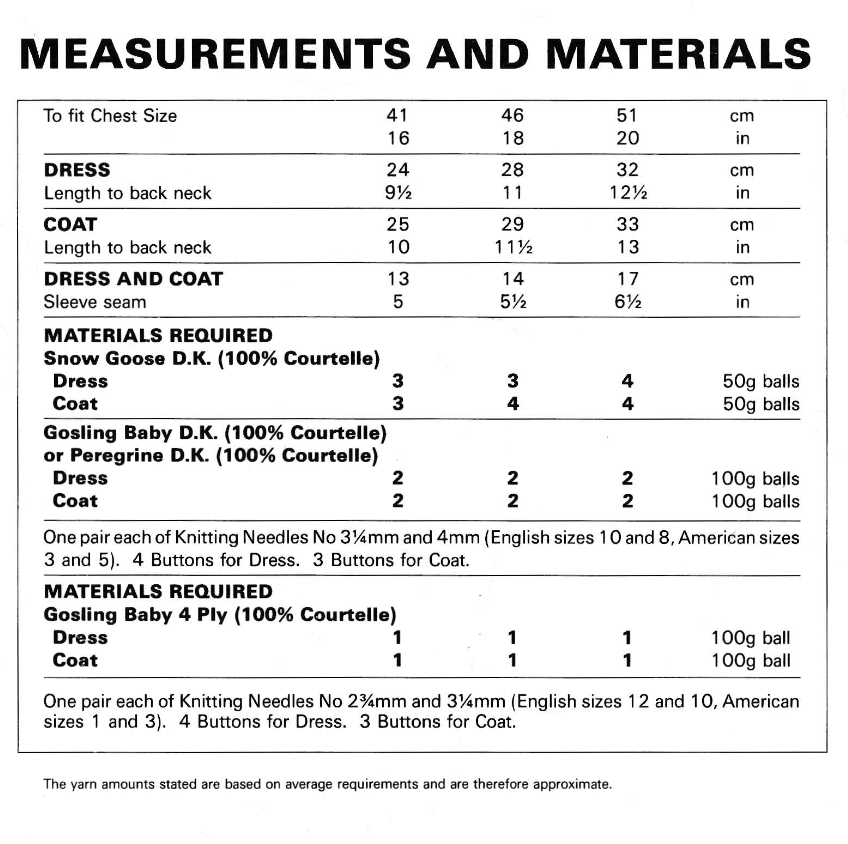 Much older patterns (usually 1970s and earlier) are written in UK imperial terms. For help with this, please click here to read our vintage pattern help and knitting needle size conversion chart.