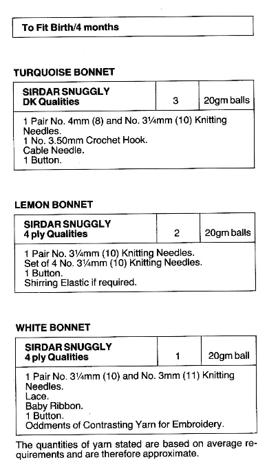 Baby Bonnets Vintage Knitting Pattern size 0-4m