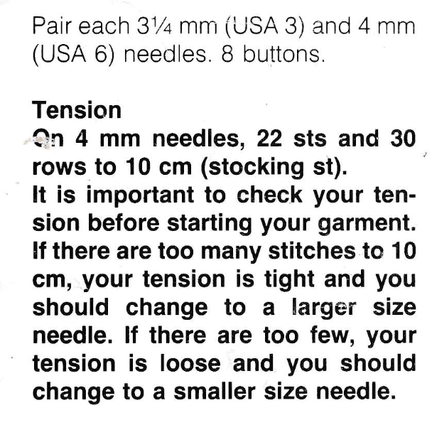 Much older patterns (usually 1970s and earlier) are written in UK imperial terms. For help with this, please click here to read our vintage pattern help and knitting needle size conversion chart.