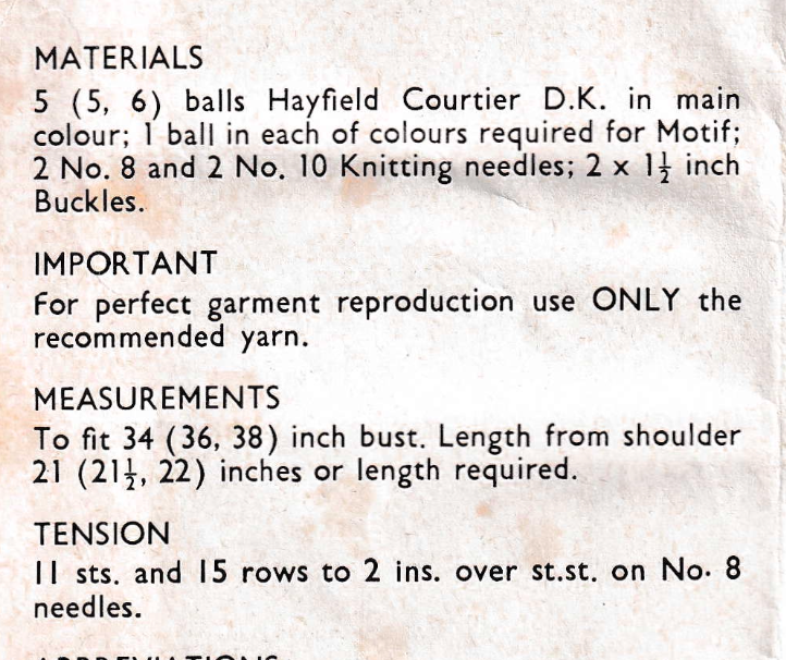 Much older patterns (usually 1970s and earlier) are written in UK imperial terms. For help with this, please click here to read our vintage pattern help and knitting needle size conversion chart.