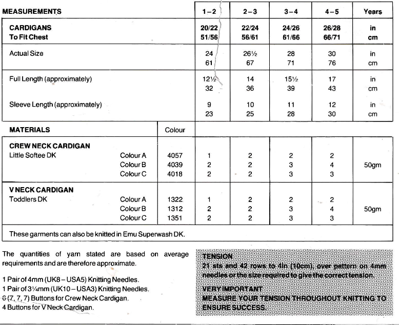 V and round neck cardigans for toddlers and children knitting pattern
